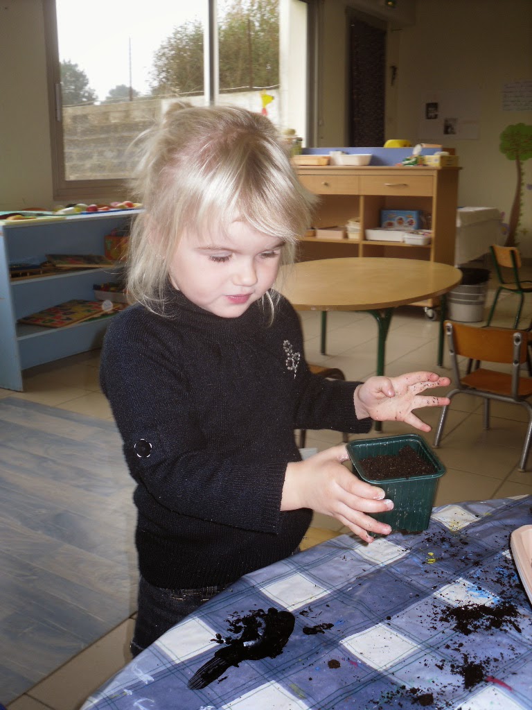 Cette semaine nous commençons aussi à appréhender le "je grandis" au travers des plantations et en nous mesurant.