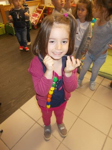 Ensuite ils ont fait des colliers en alternant petite et grande perle