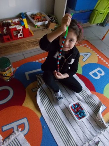 Les PS ont travaillé la motricité fine en faisant un travail libre de laçage.