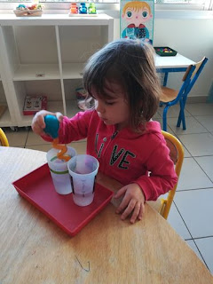 Les PS ont musclé leur main en mettant des perles dans des alvéoles à l'aide de différentes pinces.