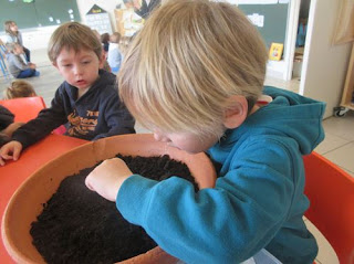 cette semaine nous plantons des graines germées dans la terre et nous en laissons dans un bac avec un papier mouillé dessus et nous comparerons