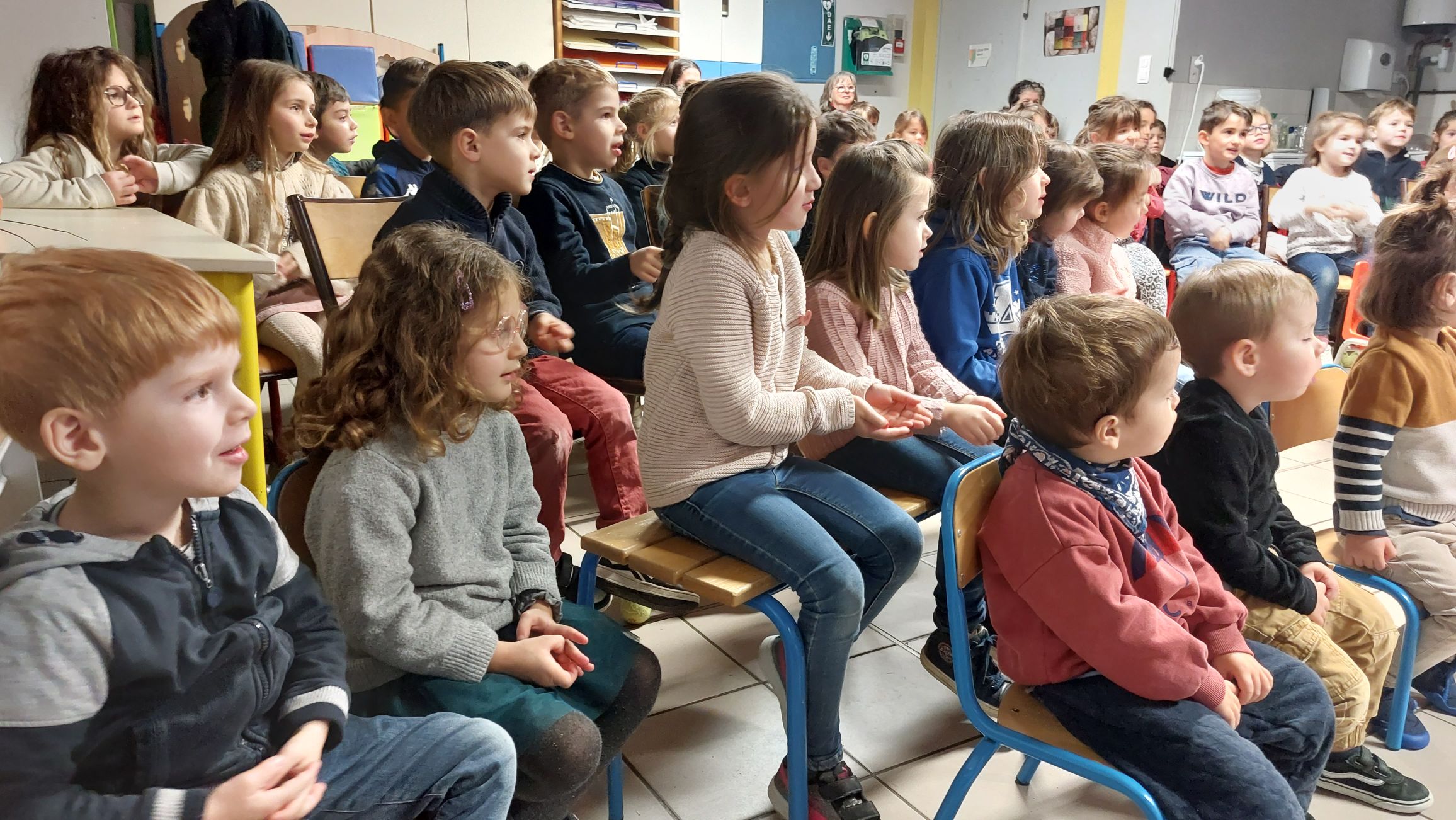 Lundi les enfants ont assisté à un spectacle de Noël, Mme Bloom-Pille conteuse est venue jouer un conte de Noël interactif et plein de surprises !!